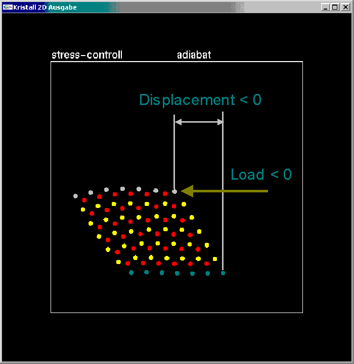 The process is performed at a low and constant temperature level. Thus the Lennard-Jones parameters are chosen such as to provide a stable austenitic lattice even at low temperatures. Therefore this experiment investigates the mechanic properties of the body, rather than its thermodynamics.